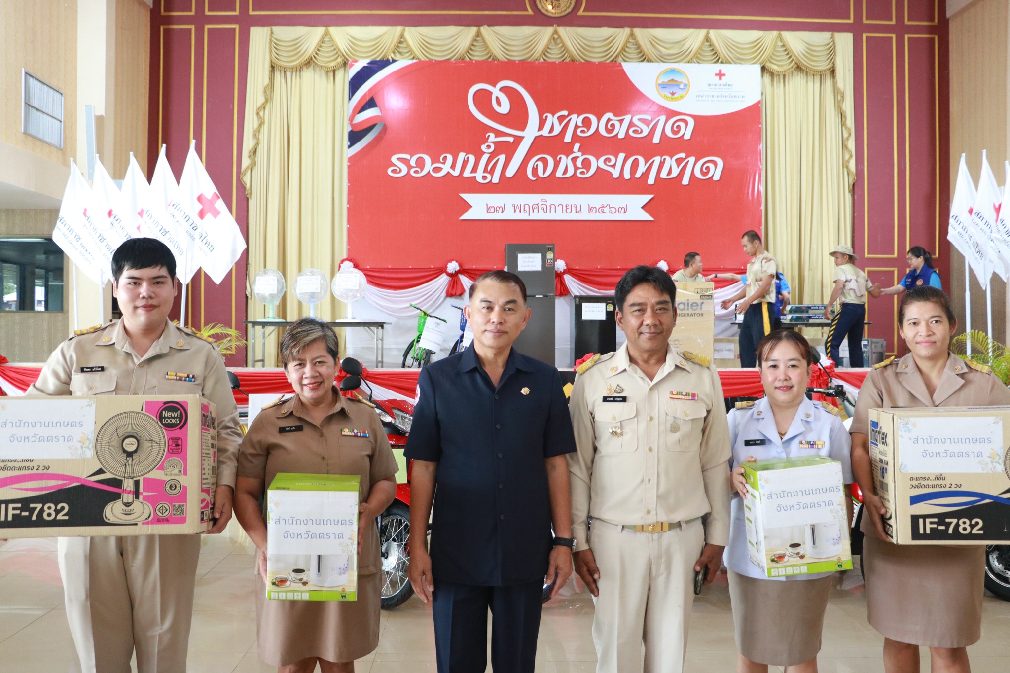 วันที่ 27 พฤศจิกายน 2567 นายวินัย ขยันยิ่ง เกษตรจังหวัดตราด มอบหมายให้ นายสายชล เจริญพร หัวหน้ากลุ่มอารักขาพืช และนางทัศนี ภู่ชัย หัวหน้าฝ่ายบริหารทั่วไป พร้อมด้วยเจ้าหน้าที่สำนักงานเกษตรจังหวัดตราด เข้าร่วมมอบสิ่งของ อาทิ พัดลม และกระติกน้ำร้อน ในงานวันรวมน้ำใจกาชาด เนื่องในงาน เทศกาลปีใหม่จังหวัดตราด ประจำปี 2568 ณ ศาลาประชาคมจังหวัดตราด