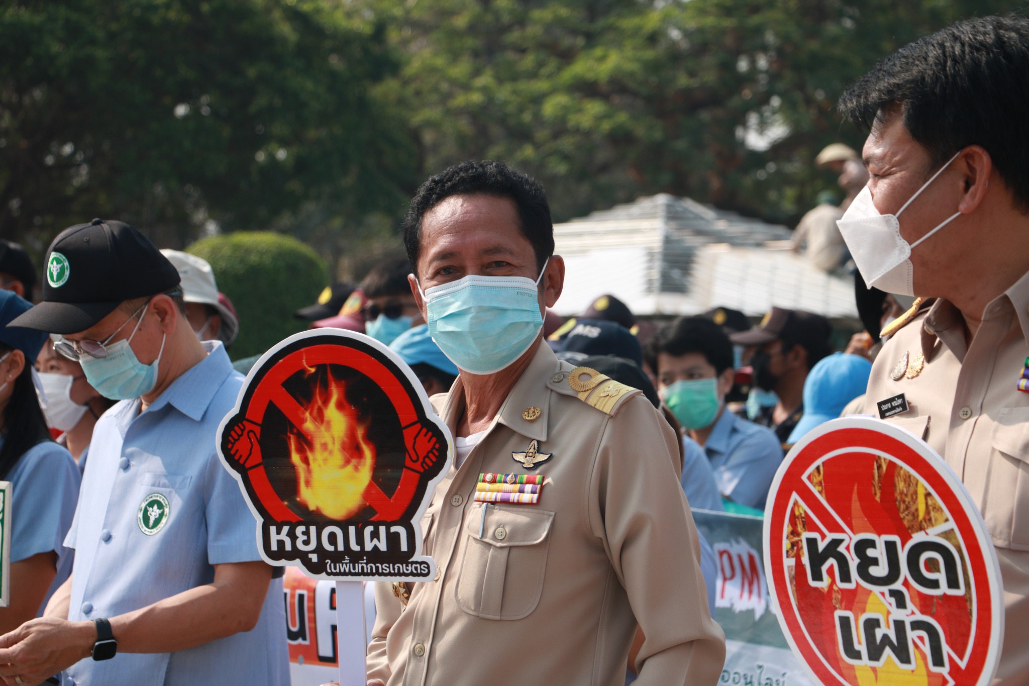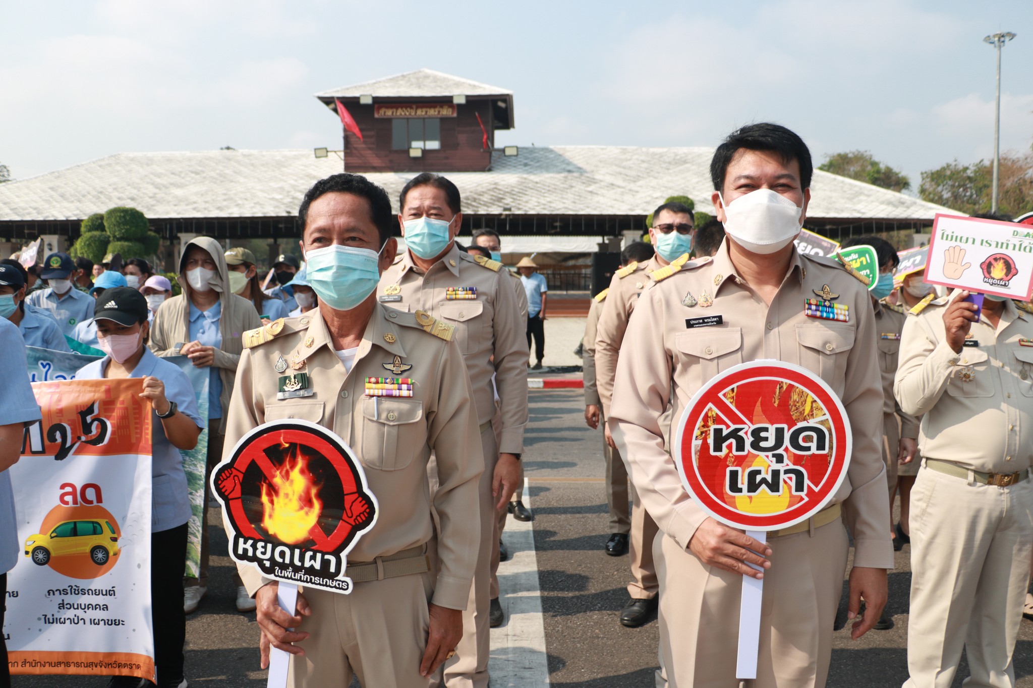 วันที่ 3 กุมภาพันธ์ 2568 สำนักงานเกษตรจังหวัดตราด นำโดย นายวินัย ขยันยิ่ง เกษตรจังหวัดตราด พร้อมด้วย นายสายชล เจริญพร หัวหน้ากลุ่มอารักขาพืช นางทัศนี ภู่ชัย หัวหน้าฝ่ายบริหารทั่วไป และเจ้าหน้าที่สำนักงานเกษตรจังหวัดตราด ร่วมกิจกรรมรณรงค์ประชาสัมพันธ์ (Kick off) การป้องกันและแก้ไขปัญหาไฟป่า หมอกควัน และฝุ่นละอองขนาดเล็ก (PM 2.5) โดยมีนายณัฐพงษ์ สงวนจิตร ผู้ว่าราชการจังหวัดตราด เป็นประธานในการทำกิจกรรมในครั้งนี้ เพื่อรณรงค์และสร้างการรับรู้ให้ประชาชนมีความตระหนักในการหยุดเผาอันเป็นหนึ่งในสาเหตุที่ทำให้เกิดมลพิษในอากาศและทำให้เกิดฝุ่นละออกขนาดเล็ก ที่ส่งผลกระทบต่อสุขภาพของประชาชนชาวตราด ณ บริเวณลานหน้า พระบรมราชานุสาวรีย์ รัชกาลที่ 5 อำเภอเมือง จังหวัดตราด