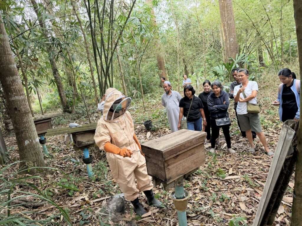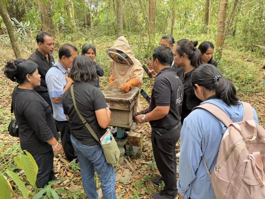 การจัดอบรมในครั้งนี้ มีวัตถุประสงค์เพื่อเพิ่มประสิทธิภาพการผลิตแมลงเศรษฐกิจให้มีคุณภาพและได้มาตรฐานเป็นที่ต้องการของตลาด ทั้งนี้ ได้รับเกียรติจากนายไพรวัลณ์ ชูใหม่ ร่วมถ่ายทอดความรู้เรื่อง การบริหารจัดการแหล่งอาหารของผึ้ง วัสดุที่ใช้ในการเลี้ยงผึ้ง การผลิตน้ำผึ้งให้ได้คุณภาพ และสาธิตและฝึกปฏิบัติการเก็บน้ำให้ได้คุณภาพ