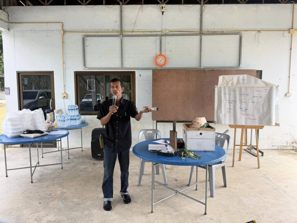 วันที่ 7 มกราคม 2569 นางจรัสศรี คำภีรสิงห์ เกษตรจังหวัดพังงา มอบหมายให้นางสาวอนุสรา จำปาดวง หัวหน้ากลุ่มอารักขาพืช พร้อมด้วยเจ้าหน้าที่กลุ่มอารักขาพืช สำนักงานเกษตรจังหวัดพังงา จัดอบรมถ่ายทอดความรู้ด้านแมลงเศรษฐกิจ ภายใต้โครงการส่งเสริมและพัฒนาสินค้าเกษตรชีวภาพเพื่อเข้าสู่ห่วงโซ่อุปทานเศรษฐกิจชีวภาพ โดยมีนางสาวอัจฉรา นพรัตน์ เกษตรอำเภอตะกั่วป่า กล่าวเปิดงานและร่วมพบปะเกษตรกร ณ ศาลาเอนกประสงค์ หมู่ที่ 6 ตำบลบางนายสี อำเภอตะกั่วป่า จังหวัดพังงา มีเกษตรกรผู้เลี้ยงผึ้งโพรงและเจ้าหน้าที่ผู้เกี่ยวข้องเข้าร่วมกว่า 29 คน