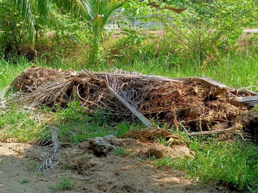 2.ทำความสะอาดแปลง เช่น กำจัดตอปาล์มเก่า วัชพืช หรือพืชอาศัยอื่น ลดการสะสมของเชื้อในธรรมชาติ และจัดการระบบระบายน้ำให้ดี
