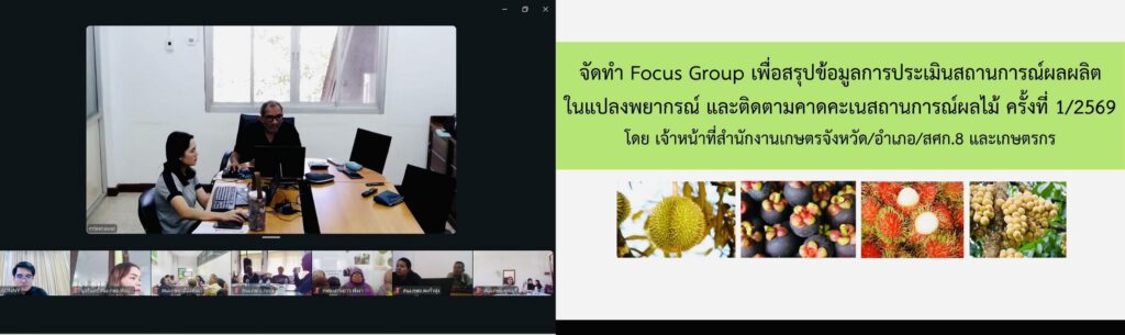วันที่ 14 มกราคม 2569 นางจรัสศรี คำภีรสิงห์ เกษตรจังหวัดพังงา มอบหมายให้กลุ่มส่งเสริมและพัฒนาการผลิต จัดประชุมเชิงปฏิบัติการจัดทำ Focus Group เพื่อสรุปข้อมูลการประเมินสถานการณ์ผลผลิตในแปลงพยากรณ์ บูรณาการร่วมกับติดตามคาดคะเนสถานการณ์ผลไม้ ระดับจังหวัด ครั้งที่ 1/2569 ภายใต้โครงการส่งเสริมและพัฒนาสินค้าเกษตรอัตลักษณ์พื้นถิ่นเพื่อเข้าสู่ห่วงโซ่อุปทานเศรษฐกิจสร้างสรรค์ เพื่อติดตามสถานการณ์ผลไม้ที่สำคัญ 4 ชนิด ได้แก่ ทุเรียน มังคุด เงาะ และลองกอง สำหรับใช้เป็นข้อมูลประกอบการจัดทำข้อมูลเอกภาพ และจัดทำแผนบริหารจัดการผลไม้ของจังหวัด ประจำปี 2569 ณ ห้องประชุมสำนักงานเกษตรจังหวัดพังงา ตำบลท้ายช้าง อำเภอเมืองพังงา จังหวัดพังงา และผ่านระบบออนไลน์ Zoom Meeting ณ สำนักงานเกษตรอำเภอ