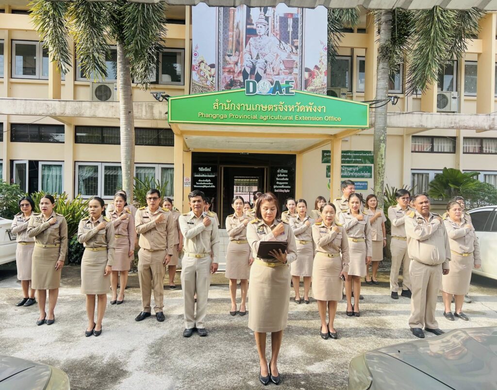 วันที่ 19 มกราคม 2569 นางจรัสศรี คำภีรสิงห์ เกษตรจังหวัดพังงา พร้อมด้วยข้าราชการและเจ้าหน้าที่สำนักงานเกษตรจังหวัดพังงา ร่วมประกาศเจตนารมณ์ต่อต้านการทุจริต และปฏิญาณตนในการปฏิบัติหน้าที่ด้วยความซื่อสัตย์สุจริต ไม่เพิกเฉย และไม่ทนต่อการทุจริต ณ บริเวณลานหน้าสำนักงานเกษตรจังหวัดพังงา ภายใต้กิจกรรม “DOAE โปร่งใส หัวใจคุณธรรม” ไม่ทนต่อการทุจริต
