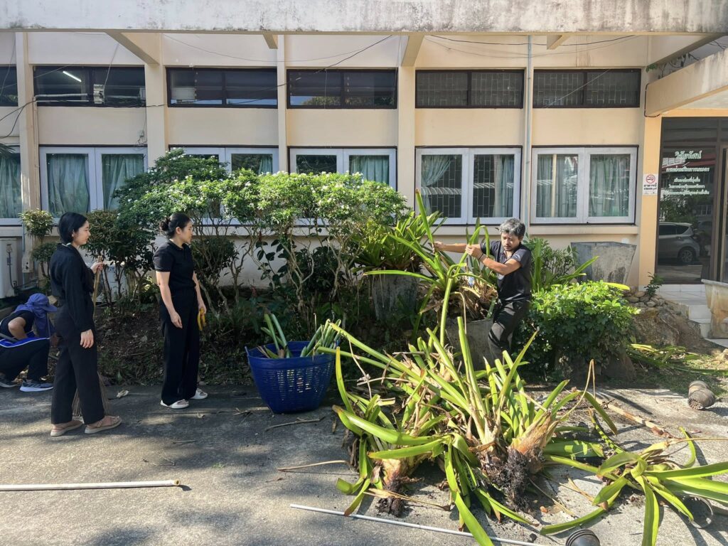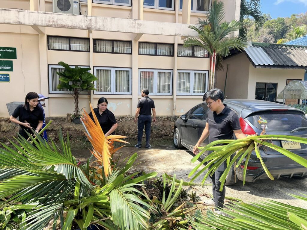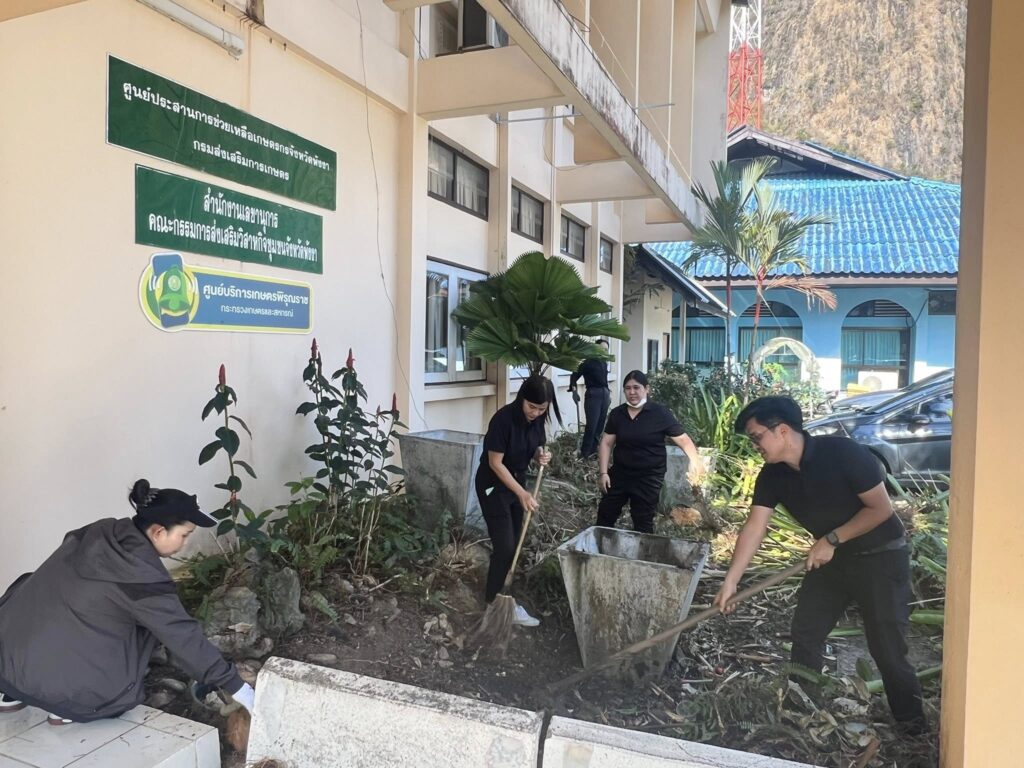 วันที่ 6 กุมภาพันธ์ 2569 นางจรัสศรี คำภีรสิงห์ เกษตรจังหวัดพังงา ร่วมกับเจ้าหน้าที่สำนักงานเกษตรจังหวัดพังงา จัดกิจกรรม 5ส ประจำเดือนกุมภาพันธ์ 2569 โดยมีการบำรุงรักษาต้นไม้ ด้วยการตัดแต่งกิ่งไม้ รดน้ำต้นไม้ และทำความสะอาดบริเวณสำนักงานเกษตรจังหวัดพังงา เพื่อปรับภูมิทัศน์ทำให้สิ่งแวดล้อมมีความสวยงาม สะอาด มีความพร้อมต่อการติดต่อราชการและการให้บริการเกษตรกรและประชาชน อีกทั้ง ยังเป็นการสร้างความสามัคคี ความเสียสละ ความสัมพันธ์อันดีกันภายในหน่วยงาน