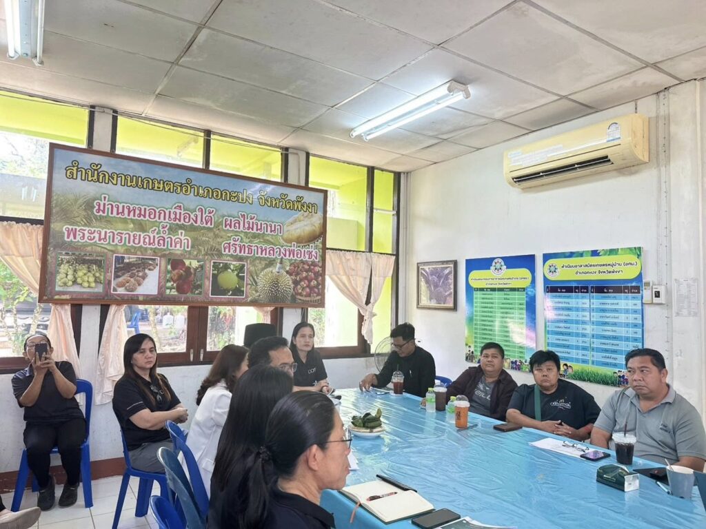 นอกจากนี้ คณะนิเทศงานได้ลงพื้นที่ติดตามและเยี่ยมเยียน ให้กำลังใจการขับเคลื่อนการดำเนินงานของสำนักงานเกษตรอำเภอกะปง และติดตามการดำเนินกิจกรรมของแปลงใหญ่มังคุด หมู่ที่ 1 2 4 ตำบลเหมาะ อำเภอกะปง จังหวัดพังงา ซึ่งเป็นแปลงยกระดับแปลงใหญ่ด้วยเกษตรสมัยใหม่และเชื่อมโยงตลาด โดยมีนายเอกพล แก้วสะอาด ประธานกลุ่มพร้อมสมาชิก ร่วมให้ข้อมูลการดำเนินงาน พร้อมลงพื้นที่ติดตามโครงการส่งเสริมเศรษฐกิจพอเพียงในชุมชน นำโดยนายรณพล ขวัญเซ่ง ประธานกลุ่ม ณ แปลงของสมาชิกกลุ่มเศรษฐกิจพอเพียงในชุมชนบ้านกะปง ตำบลกะปง อำเภอกะปง จังหวัดพังงา เพื่อติดตามผลการดำเนินงาน ความก้าวหน้า ปัญหาและอุปสรรค พร้อมทั้งร่วมกันหาแนวทางในการแก้ไข ตลอดจนส่งเสริมและพัฒนาศักยภาพของกลุ่ม/องค์กรเกษตรกรให้สามารถดำเนินกิจกรรมทางการเกษตร ตามเป้าหมาย