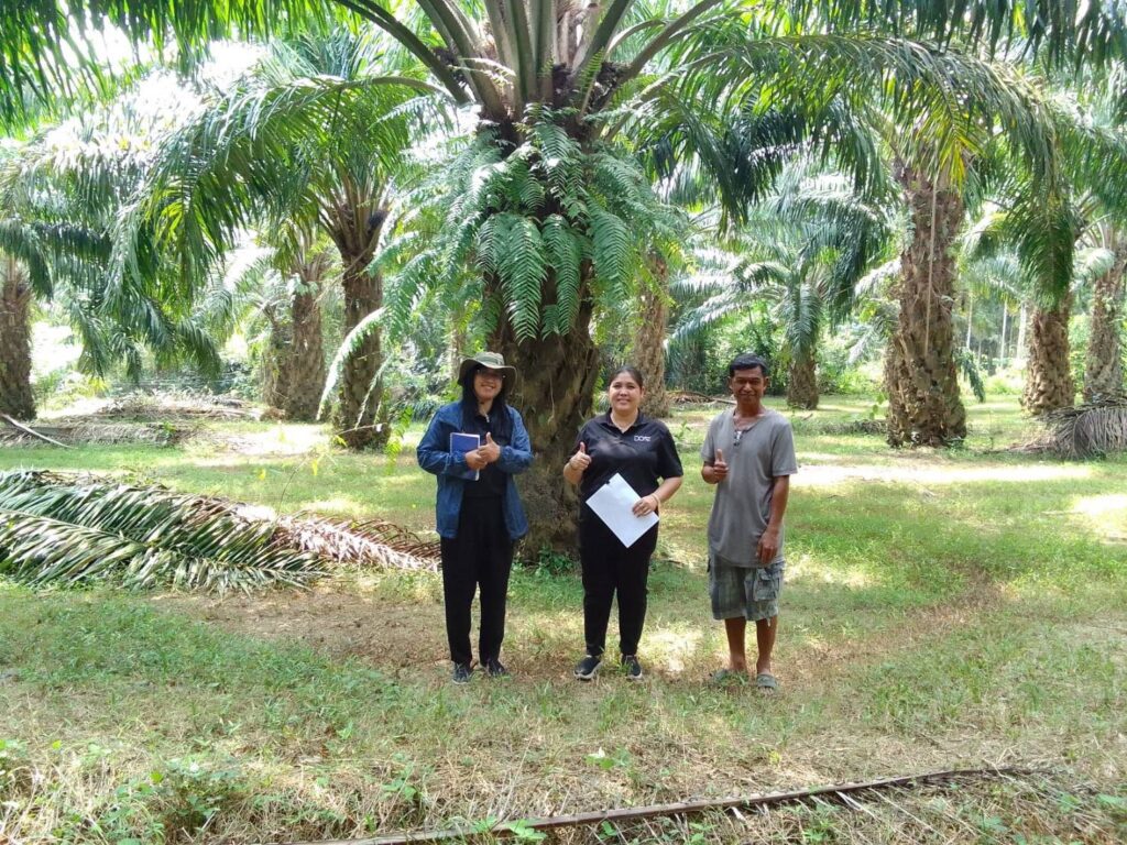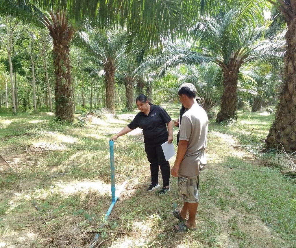 วันที่ 5 มีนาคม 2569 นางจรัสศรี คำภีรสิงห์ เกษตรจังหวัดพังงา มอบหมายให้นางสาวอรอุมา ศุภศรี นักวิชาการส่งเสริมการเกษตรชำนาญการ พร้อมด้วยนางสาวสุดใจ ดวงนามล นักวิชาการส่งเสริมการเกษตรชำนาญการ สำนักงานเกษตรอำเภอคุระบุรี ลงพื้นที่ติดตามแปลงถ่ายทอดเทคโนโลยี เพื่อเพิ่มผลิตภาพการผลิตสินค้าเกษตร (ปาล์มน้ำมัน) ภายใต้โครงการยกระดับสินค้าเกษตรมูลค่าสูง จำนวน 1 แปลง ของนายสมชาย โต๊ะสกุล หมู่ที่ 4 ตำบลแม่นางขาว อำเภอคุระบุรี เพื่อติดตามและร่วมวางแผนการการให้ปุ๋ยตามค่าวิเคราะห์ใบ ทุก 2 เดือน และการเก็บรวบรวมข้อมูลการจัดการสวนและผลผลิตตลอดปี 2569 ทั้งนี้ ได้วางแผนในการใส่ปุ๋ยเคมี จากเดิม 8 กิโลกรัม/ไร่/ปี เพิ่มขึ้นเป็น 10 กิโลกรัม/ไร่/ปี พร้อมทั้งให้น้ำ เพื่อเพิ่มความชื้นในสวนปาล์มน้ำมันตลอดช่วงฤดูแล้ง ทั้งนี้ ได้ลงพื้นที่ในพบปะพูดคุยและประเมินความพึงพอใจต่อประโยชน์ที่ได้รับจากเกษตรกรรายย่อยที่เข้าร่วมเป็นสมาชิก RSPO จำนวน 5 ราย ซึ่งเป็นสมาชิกที่เข้าร่วมโครงการกับกลุ่มวิสาหกิจชุมชนปาล์มน้ำมัน ทับทิม & ไชโย มากกว่า 3 ปี มีข้อสรุป ดังนี้