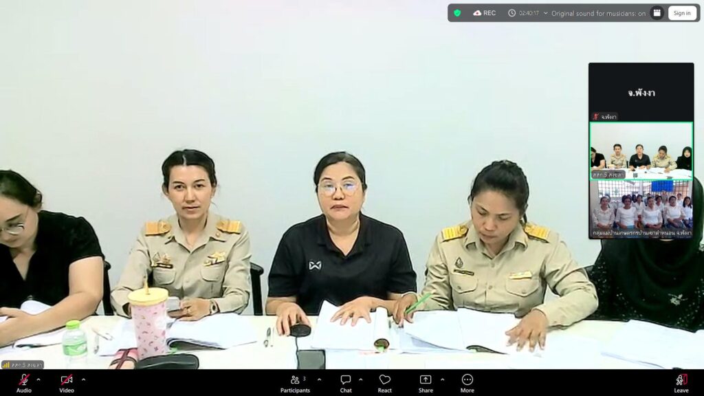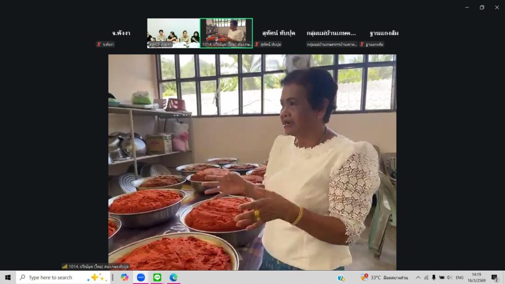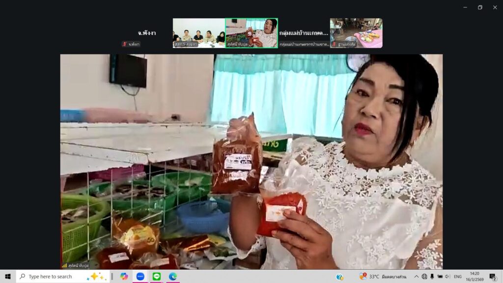 วันที่ 16 มีนาคม 2569 ณ ที่ทำการกลุ่มแม่บ้านเกษตรกรบ้านเขาตำหนอน หมู่ที่ 1 ตำบลถ้ำทองหลาง อำเภอทับปุด จังหวัดพังงา สำนักงานเกษตรจังหวัดพังงา นำโดยนางจรัสศรี คำภีรสิงห์ เกษตรจังหวัดพังงา ร่วมกับนางสาวรุ่งทิวา รักษาแก้ว เกษตรอำเภอทับปุด พร้อมด้วยเจ้าหน้าที่ผู้เกี่ยวข้อง เข้ารับการคัดเลือกเกษตรกร บุคคลทางการเกษตร และสถาบันเกษตรกรดีเด่น ประเภทกลุ่มแม่บ้านเกษตรกร ระดับเขต ประจำปี 2569 ของกลุ่มแม่บ้านเกษตรกรบ้านเขาตำหนอน อ.ทับปุด ผ่านระบบออนไลน์ Zoom Meeting