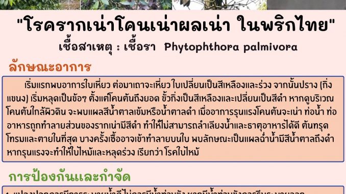 โรครากเน่าโคนเน่าผลเน่าในพริกไทย 24 สิงหาคม 2022 Phangnga ข่าวเตือนการระบาดศัตรูพืช 0 แอปพลิเคชั่นสมุดทะเบียนเกษตรกรดิจิทัลปลูกผักอยู่บ้าน สร้างแหล่งอาหาร สร้างงาน ต้านภัยโควิด จ.พังงาDO IT FROM HOME สลัลโรล & มิ๊กซ์สลัด ศูนย์จัดการดินปุ๋ยชุมชนมะรุ่ย อำเภอทับปุด จังหวัดพังงา