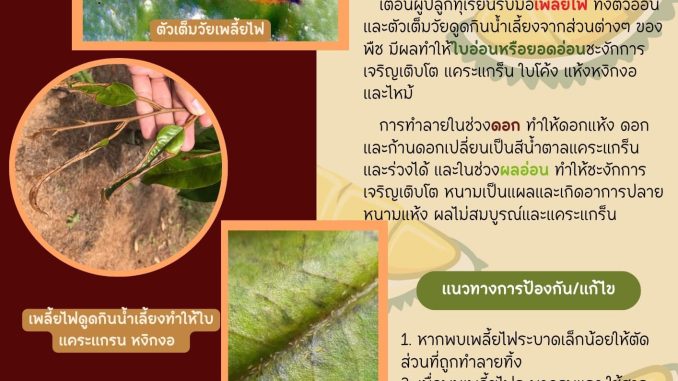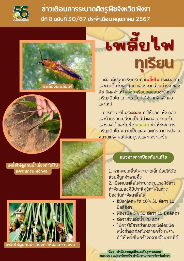 เพลี้ยไฟทุเรียน 24 มิถุนายน 2024 Phangnga ข่าวเตือนการระบาดศัตรูพืช 0 แอปพลิเคชั่นสมุดทะเบียนเกษตรกรดิจิทัลปลูกผักอยู่บ้าน สร้างแหล่งอาหาร สร้างงาน ต้านภัยโควิด จ.พังงาDO IT FROM HOME สลัลโรล & มิ๊กซ์สลัด ศูนย์จัดการดินปุ๋ยชุมชนมะรุ่ย อำเภอทับปุด จังหวัดพังงา