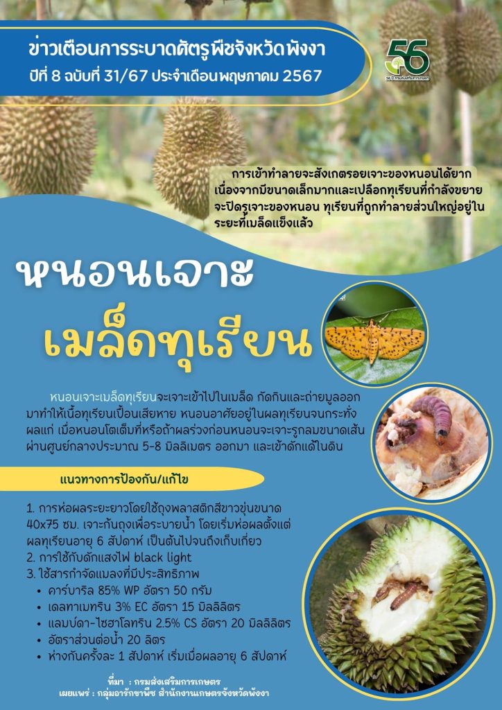 หนอนเจาะเมล็ดทุเรียน 24 มิถุนายน 2024 Phangnga ข่าวเตือนการระบาดศัตรูพืช 0 แอปพลิเคชั่นสมุดทะเบียนเกษตรกรดิจิทัลปลูกผักอยู่บ้าน สร้างแหล่งอาหาร สร้างงาน ต้านภัยโควิด จ.พังงาDO IT FROM HOME สลัลโรล & มิ๊กซ์สลัด ศูนย์จัดการดินปุ๋ยชุมชนมะรุ่ย อำเภอทับปุด จังหวัดพังงา